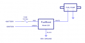 The FuelBoost 220 fuel pump controller works with a low cost electric in-line fuel pump to automatically prime your vintage vehicle’s fuel system. When you turn on the ignition, the electric fuel pump fills the carburetor bowl in just a few seconds. Then when you crank the engine, it’s ready to start instantly—no more long cranking times that wear on your starter, flywheel, and electrical system. The electric fuel pump will run for up to 25 seconds, and it stops automatically as soon as the engine starts, allowing your stock mechanical fuel pump to take over. After you shut the ignition off, the electric fuel pump is locked out for 6 hours (because if you re-start the engine within 6 hours, the fuel system is probably already primed for a fast re-start). But if you do need another fuel boost, you can override the 6 hour lockout at any time by switching the ignition off and on 3 times in 3 seconds.